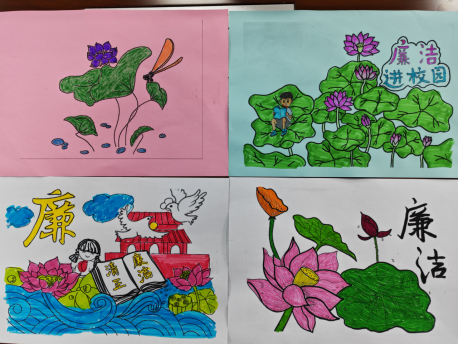 活动结束后,一幅幅完成上色的“廉洁莲画”被集中展示,构成了一道独特的“清风画廊”,成为教室中亮丽的风景线。