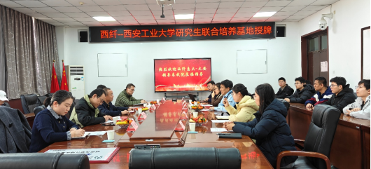 首先,举行了“西纤---西安工业大学”研究生联合培养基地授牌仪式,聘任吴双智、左振、刘涛、王晓彬4位企业骨干为西安工业大学研究生企业指导教师并颁发了聘任证书。