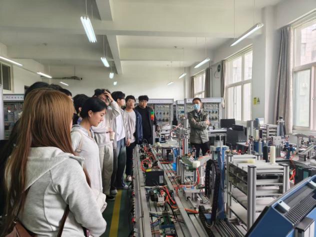 参观过程中,各实验室负责老师详细介绍了实验室的功能定位、先进设备原理及科研教学成果。在精密测量实验室,同学们了解了超精密仪器在机械精度检测中的关键作用;在创新实验室,老师分享了设计、电子、制造三个方向的学科竞赛与科创项目案例,鼓励大家积极参与实践创新;在PLC实验室、液压与气压传动实验室,老师通过生动讲解,将抽象的控制原理与工业应用场景相结合,让同学们直观感受到专业知识的实用价值。此外,机电学院中试基地的展示,也让新生对从理论设计到工程应用的完整流程有了初步认知。