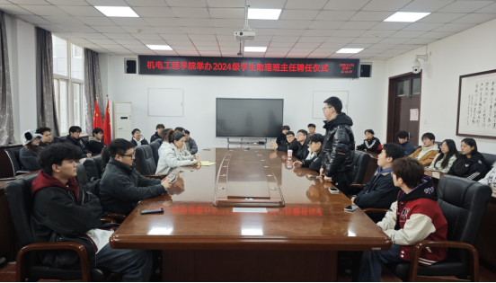 11月24日,机电工程学院在学院报告厅举行2024级学生助理班主任聘任仪式,学院学生办公室主任高珊、2024级辅导员唐雅莉以及新任学生助理班主任参加仪式,仪式由高珊主持。