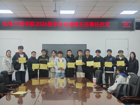 此次聘任仪式的举行,不仅为机电工程学院学生工作注入了新鲜血液,更构建了“师生协同、朋辈互助” 的育人新格局。新任学生助理班主任将以聘书为契约,以责任为担当,在助力 2024 级新生成长成才的过程中,书写机电青年的责任与担当,为学院高质量发展添砖加瓦。