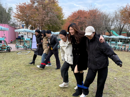活动首阶段聚焦“趣味竞技,协作聚力”,在户外运动场上,三人四足与板鞋竞速两项团体赛事依次展开。随着裁判哨声响起,三人四足比赛率先升温,副书记姚敏茹与辅导员们三人一组,用绑带将相邻脚踝紧密相连,赛前反复磨合的步伐节奏在此刻化为同步的“一二一”口号,有的队伍起步时稍显慌乱;有的队伍则凭借默契的配合稳步领先,旁观休息时不忘为场上的对手加油鼓劲,赛场瞬间成为充满欢笑与力量的“协作舞台”。