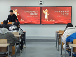 讲座中,何鹏程老师结合大学生的生活实际,围绕两大核心内容展开详细讲解。一方面,针对校园常见纠纷的法律处置,何老师聚焦宿舍矛盾、学业纠纷、消费维权等学生高频遇到的场景,用通俗易懂的语言拆解相关法律条款,明确纠纷解决的合法途径和注意事项,引导学生在面对矛盾时保持理性,学会运用法律武器维护自身合法权益。另一方面,围绕大学生刑事犯罪的风险预防,何老师重点剖析了盗窃、诈骗、故意伤害、网络犯罪等典型案例,通过真实发生在学生群体中的案例故事,揭示了刑事犯罪的严重后果和潜在诱因。