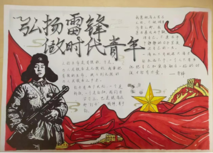 一幅幅作品布局美观、图文并茂、创意十足,既展现了同学们扎实的文字功底与艺术素养,也生动诠释了雷锋精神在新时代的丰富内涵。