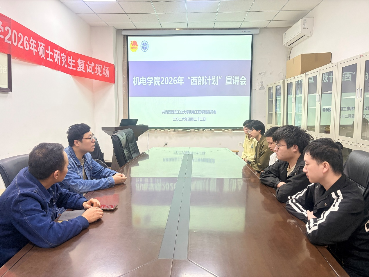 为深入贯彻落实习近平总书记给西部计划志愿者服务队队员的回信精神,引导广大青年学子扎根西部基层、担当时代使命,4月22日,机电工程学院召开2026年“西部计划”政策宣讲会。学院团委书记安春雨全方位解读了西部计划政策,动员学子积极投身志愿服务事业。部分本科未就业应届毕业生、在读研究生及有志愿服务意向的学生代表参加会议。