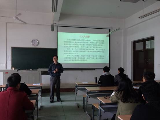 本次会议由张晖老师主持。会议的主题是带领学生党员同志深入学习十九大报告,时刻关注党的发展动向。会议中张晖老师用宣讲报告的方式带领学生党员深入学习十九大报告。会议第一部分是张晖老师与党员同志交流互动十八大以来我们党取得的历史性成就,主要从经济建设、全面深化改革、民主法治建设、思想文化建设、人民生活、生态文明建设、强军兴军、港澳台问题、全方位外交建设、全面从严治党这十方面的历史性成就中展现了在党和国家发展进程中取得了改革开放和社会主义现代化建设的历史性进步,引领我们进入“新时代”。会议的第二部分是解读四个“深刻学习领会”,主要从深刻学习领会中国特色社会主义进入新时代的新论断,深刻学习领会我国社会主要矛盾发生变化的新特点,深刻学习领会分两步走全面建设社会主义现代化的新目标,深刻学习领会党的建设的新要求这四大方面进行了深入学习探讨,让我们也体会到新时代的新思想和新变化正在深入到我们的生活中去。