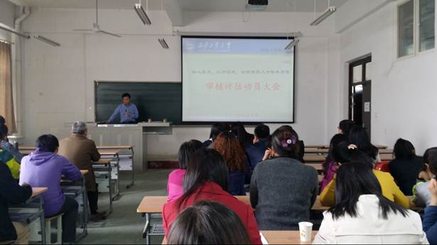 为了迎接陕西省普通高等学校本科教学工作审核评估,机电工程学院于2016年4月8日下午13:40在工2-504教室召开审核评估动员大会,全院教师参加了会议。