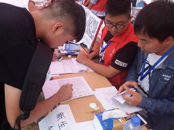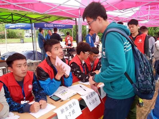 丹桂飘香,荷花满塘。2017级新生们满怀对大学的憧憬,携家长早早来到学校,开始办理大学入学报到注册相关手续。我院接待新生工作人员也按预先安排来到我院摊位前展开各自负责工作:唐雅莉老师为每名办理生源地贷款的同学办理相关缴费手续;宋荣新老师为我院2017级硕士研究生新生办理入学报到工作;学生干部们颈戴工作牌,身穿红马甲,为每名大一新生依次介绍入学报到流程、注意事项,指导新生填写报名单信息、扫码添加新生群。所有工作人员工作态度认真,讲解耐心细致。院党委书记赵玉厚老师对新生接待工作重点关注,每日亲临现场指导工作。两天的新生报到过程中,在我院工作人员的帮助引导下,我院2017级500余名新生已完成报到注册及宿舍入住手续,我院顺利完成了2017级新生入学接待工作。