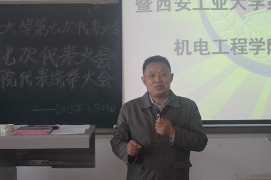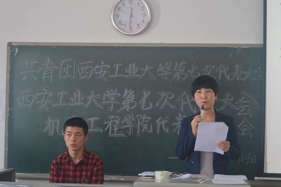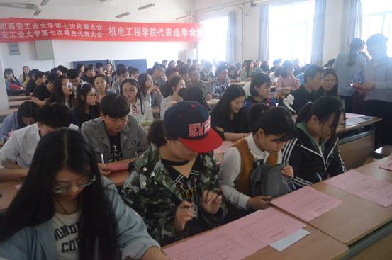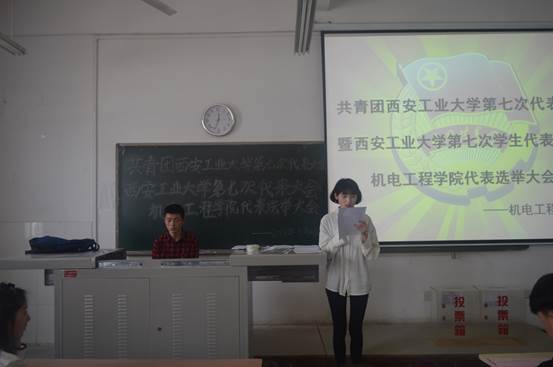 2018年3月29日中午12点,机电工程学院共青团西安工业大学第七次代表大会暨西安工业大学第七次学生代表大会机电工程学院代表选举大会于工2-504顺利举行。出席本次大会的嘉宾有我院党委书记赵玉厚、校团委文艺部部长乔璐、我院团委书记唐雅莉等老师,以及我院学生代表共计109人,本次大会由唐雅莉老师主持。