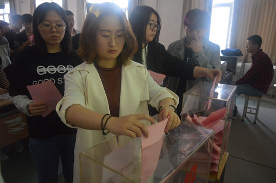 大会伊始,团委书记唐雅莉依次介绍到场嘉宾,并邀请我院党委书记赵玉厚老师致开幕词。核实到场正式代表人数、拆封选票封袋、分发选票、宣读选举办法,前期准备严格按照选举流程,环环相扣。随后,唐雅莉老师宣读参选代表个人简历并宣布选举正式开始:填写选票、检查票箱、当众点票,整个过程透明公开,保证本次投票公平公正。各位学代表们填写选票时深思熟虑、仔细斟酌,在综合候选人的各方面表现后投下自己宝贵的一票,认真履行了自己的选举权与被选举权。最后由总监票人公布选举计票结果,宣读所有候选人得票,主持人宣布最后当选结果:乔璐等26位代表当选为共青团西安工业大学第七次代表大会机电工程学院代表,杨晨曦等27位代表当选为西安工业大学第七次学生代表大会机电工程学院代表。至此,本次大会圆满落幕!